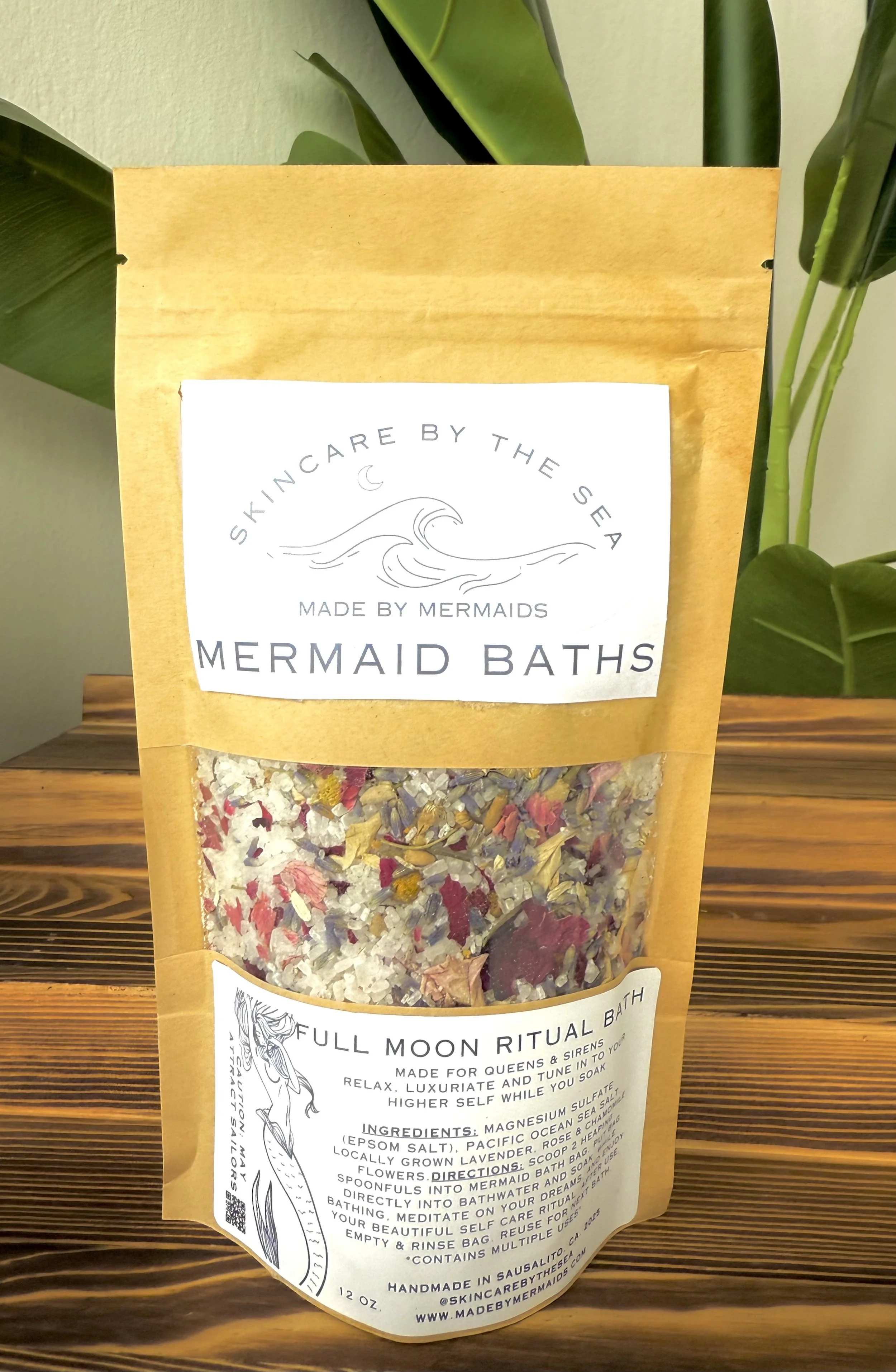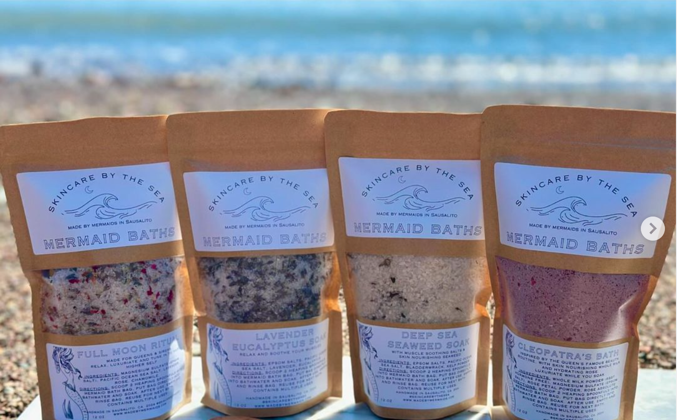 Have you tried our line of indulgent Mermaid Baths? Made with locally sourced ingredients like Pacific Ocean Sea Salt, and Sausalito grown flowers, our Mermaid Baths are made to relax your senses, while nourish your skin and soothing your muscles! Each Mermaid Bath contains multiple uses, and comes with a wooden scoop, and a special reusable cotton Mermaid Bath Bag for mess-free bathing!
